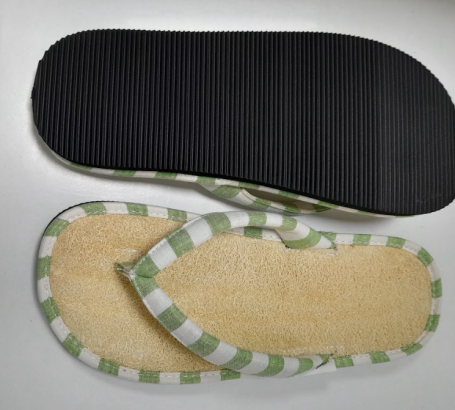 Dép mặt xơ mướp, quai kẹp bằng vải sọc trắng-xanh lá